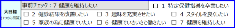 ①大目標 ⇒ 3腹囲と体重の確認、基本アンケートの【大目標】欄に反映