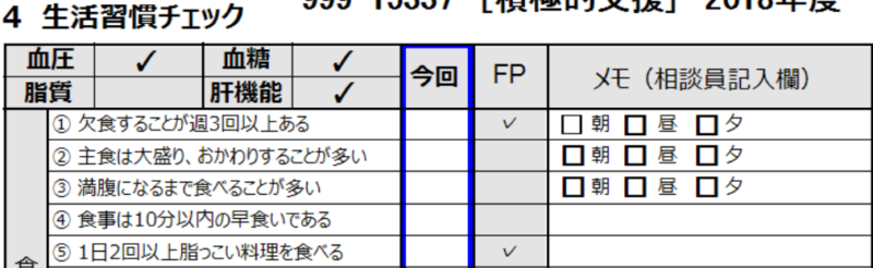 ・相談員…レポート4 生活習慣チェックの【今回】欄の該当番号にチェック