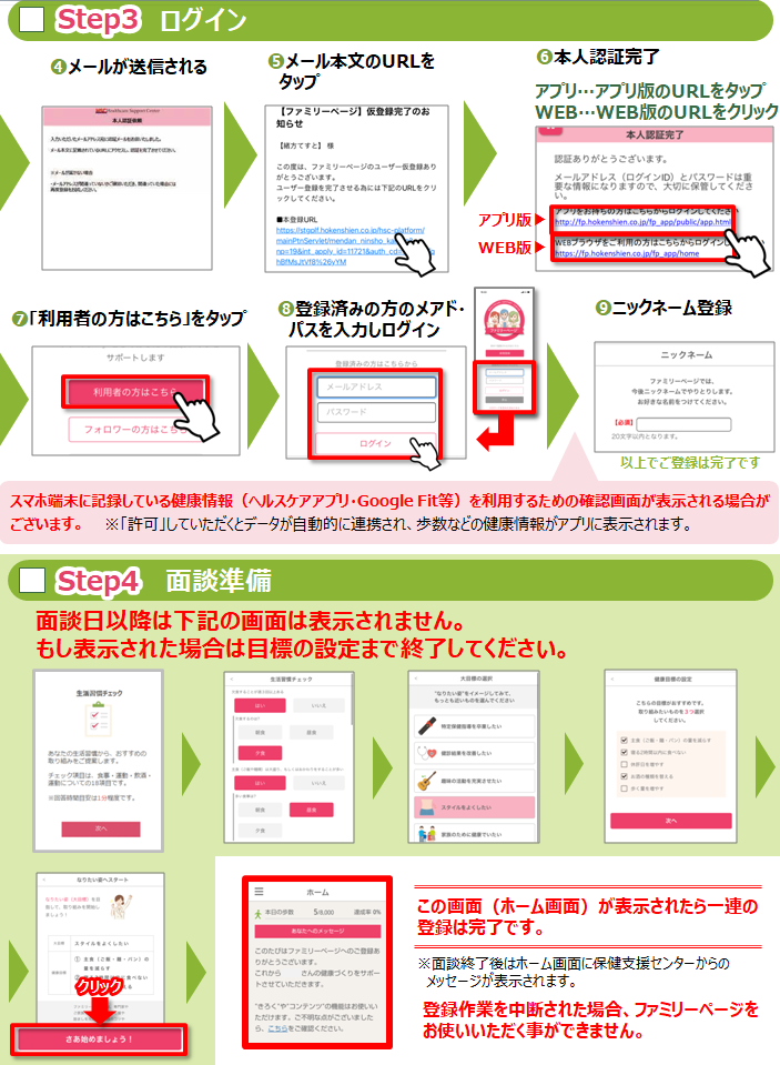 ・登録手順:あなたの支援スケジュ―ル記載のSTEP1~STEP4まで行ってください。